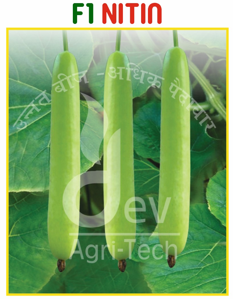 Fruit Length : 30-40 cm. Fruit Shape : Cylindrical Long. Fruit Weight : 700-800 gm. Fruit Color : Green. Days To Maturity : 55-60 Days After Sowing. USP : Very Vigorous Growing & High Yielding Hybrid With Light Green Color, Uniform In Size.