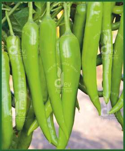 Days To First Picking : 38-45 Days plant Habit : spreading Fruit diameter : 2.2 cm Fruit length : 10-12 cm Fruit Color : parrot green Pungency : medium remarks : For Green Chilli, Suitable for fresh market.