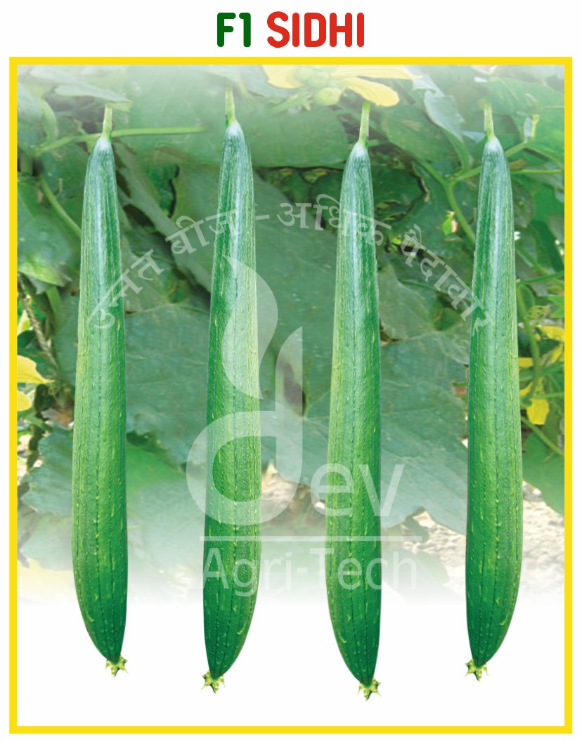 First Picking : 45-50 Days After Sowing. Fruit Color : Dark Green. Fruit Weight : 100-120 gm. Fruit Length : 25-30 cm. USP : Vigorous Growing & High Yielding.