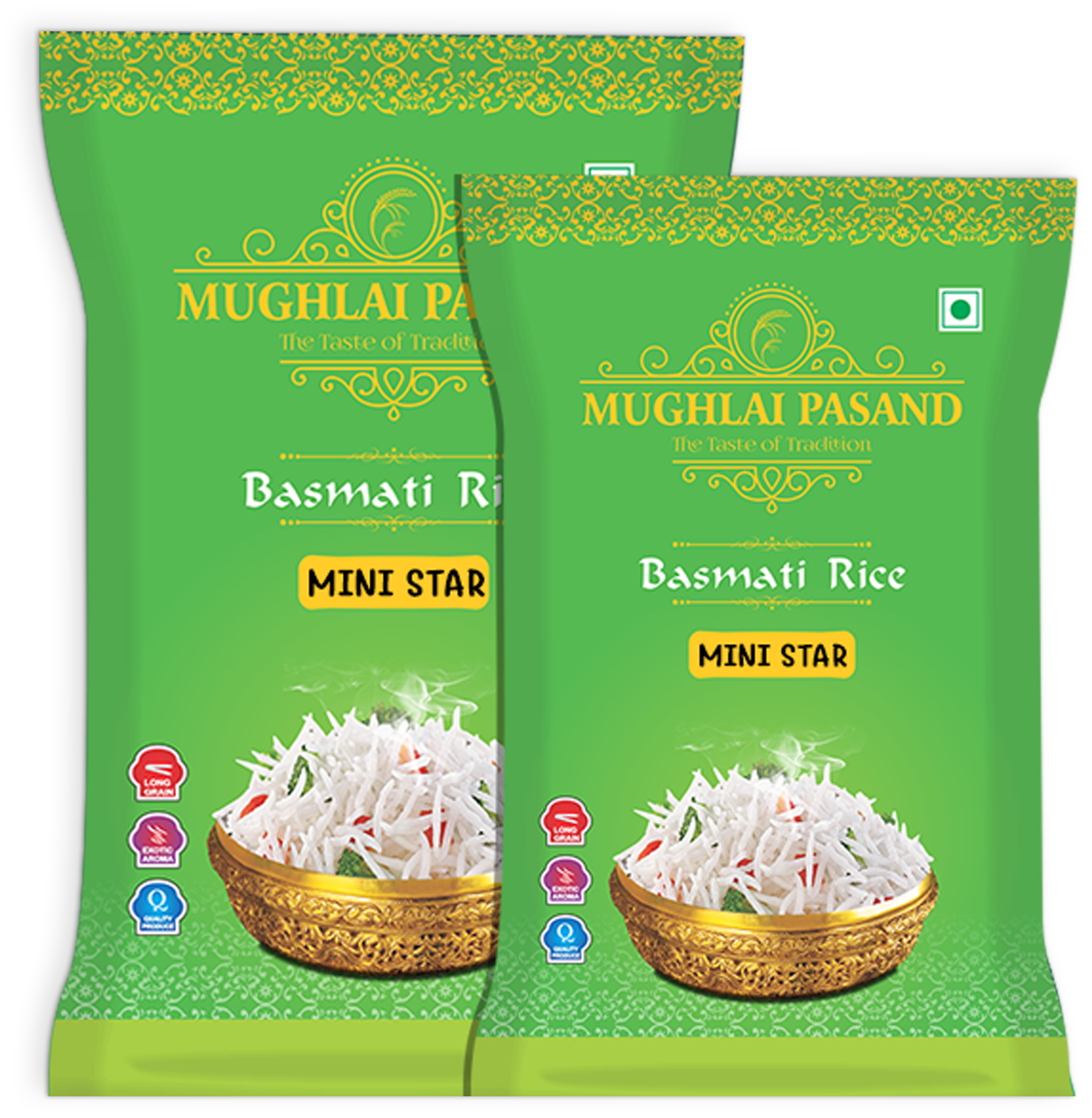 Mughlai Pasand Mini Star is defined by Its broken basmati grains and distinguished basmati aroma and texture. It can be used for preparing kheer, khichdi and fried rice etc.